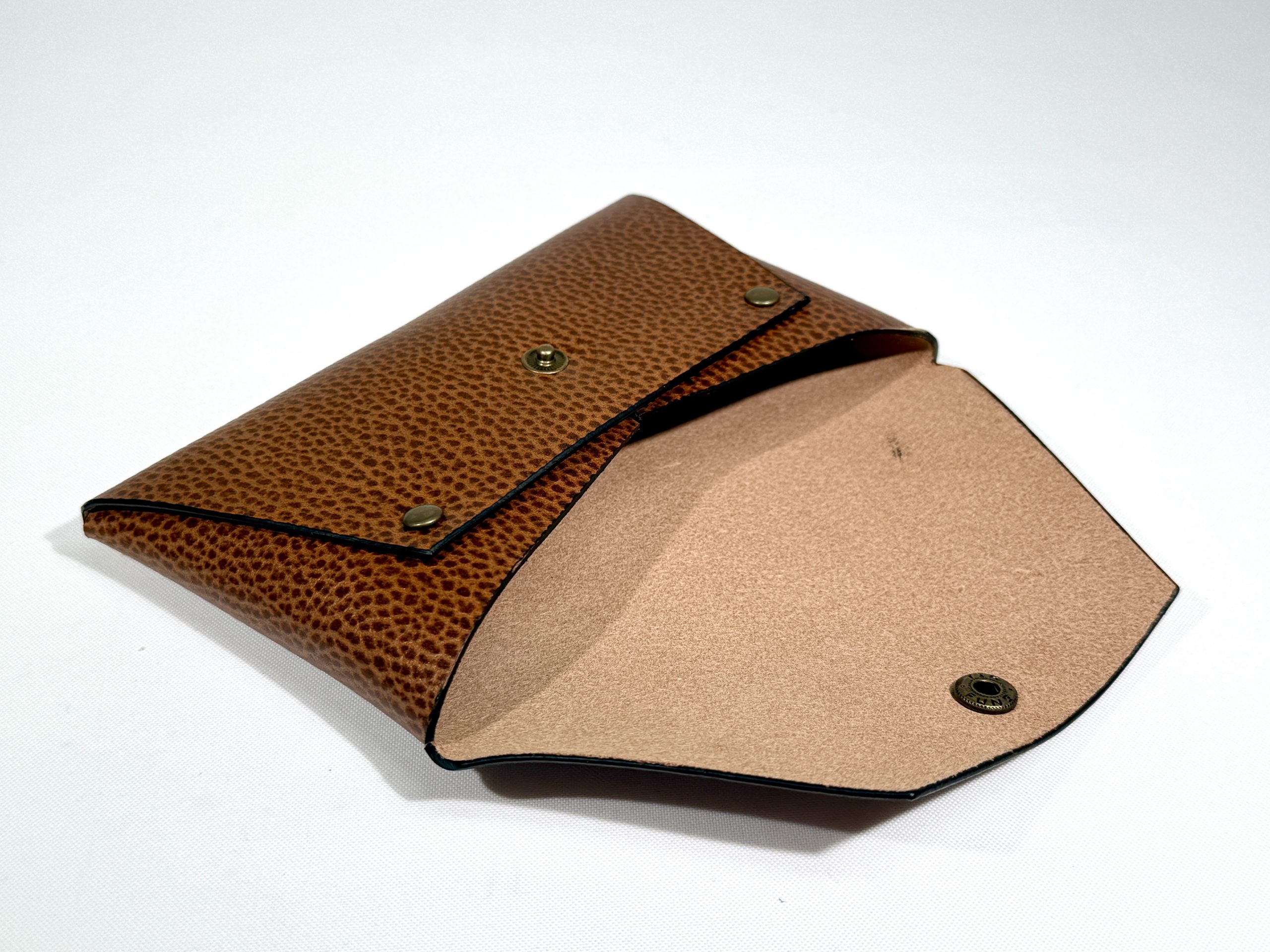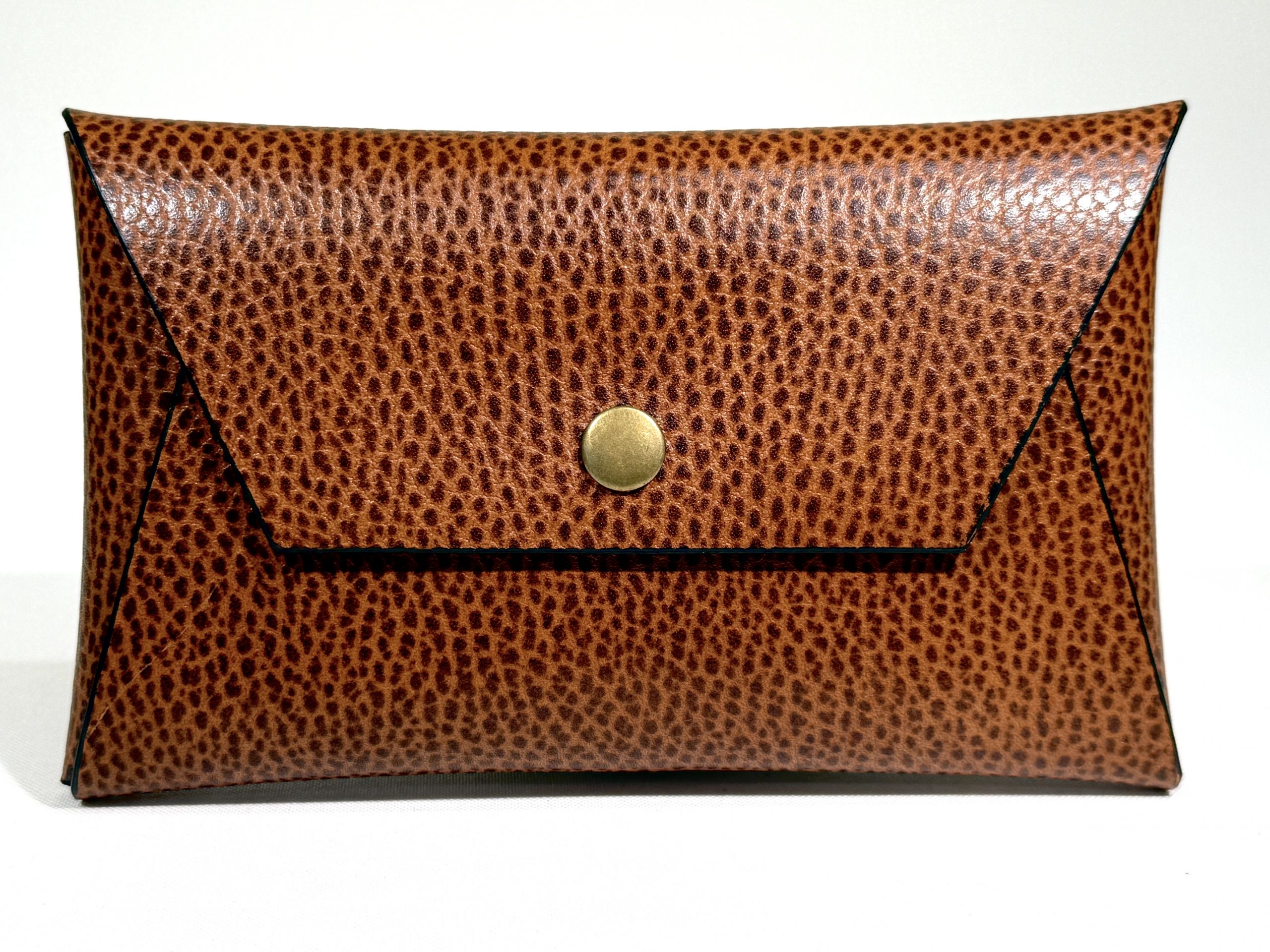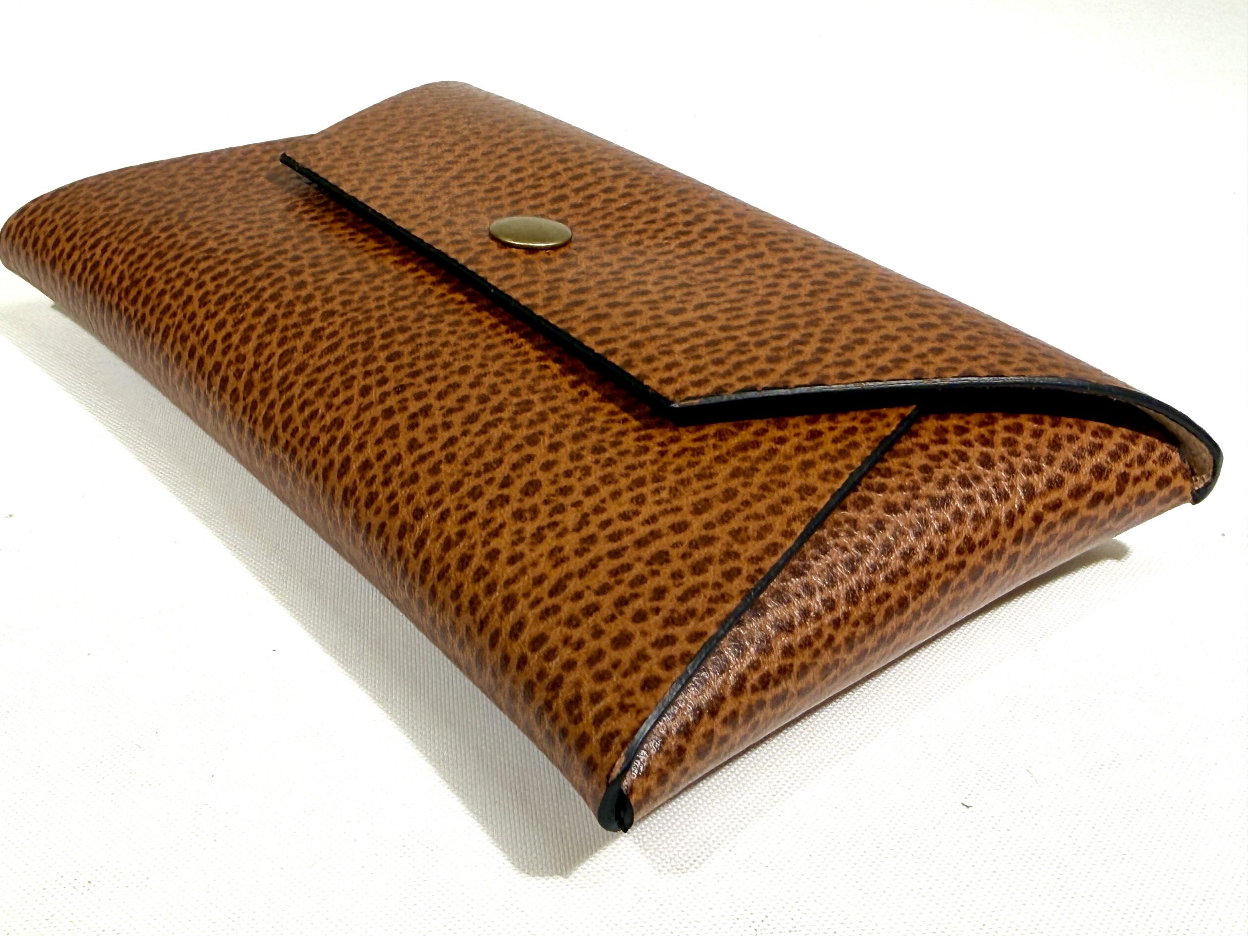 Classic envelope design leather pouch. Comes in 2 sizes, the small size can keep change, bank notes (folded), credit card/membership card while the large size can be more versatile as it can keep: cash, change, cosmetics even passport for your travel. It has popper snap closure to completely close the bag and keep everything inside.