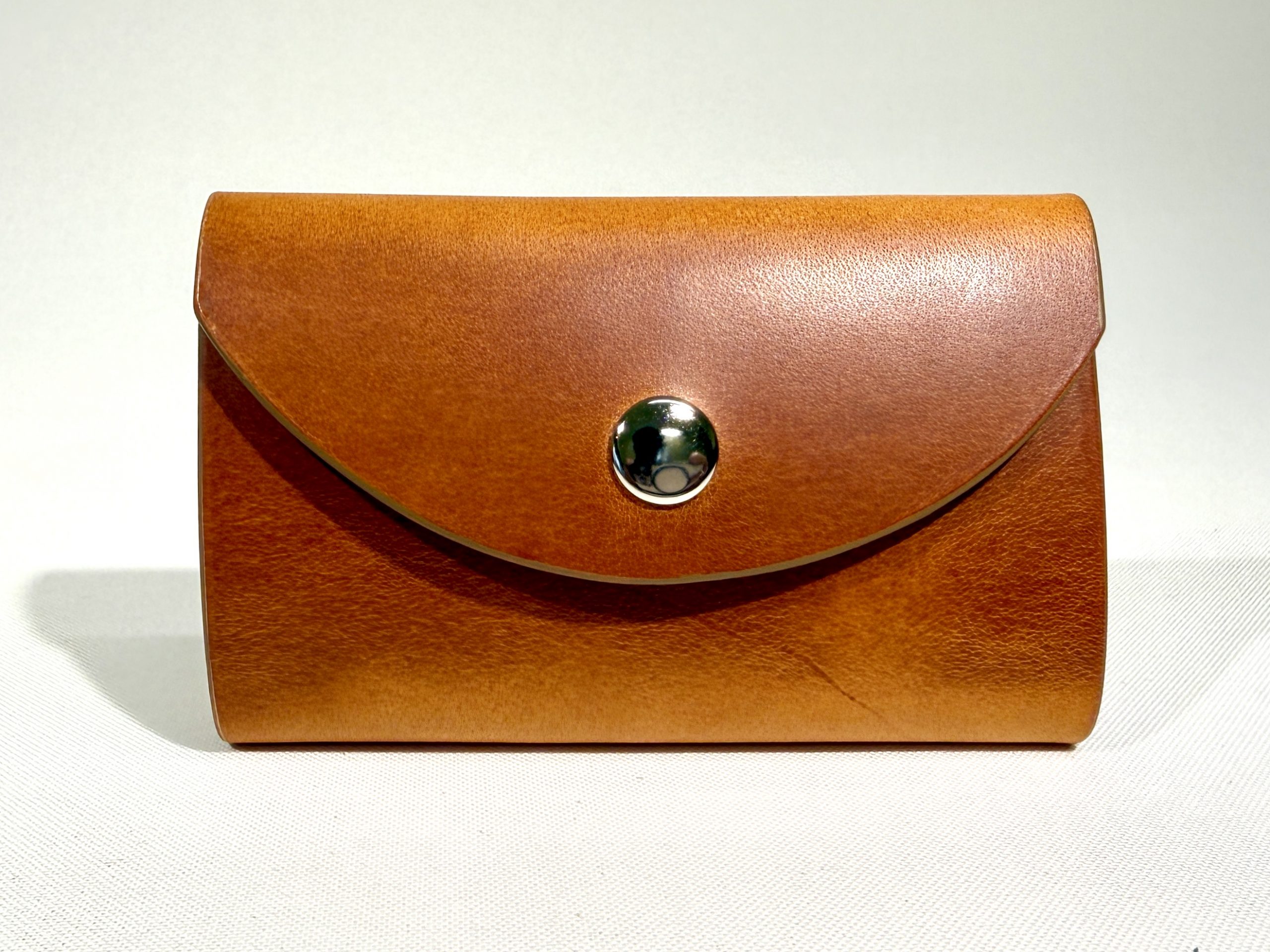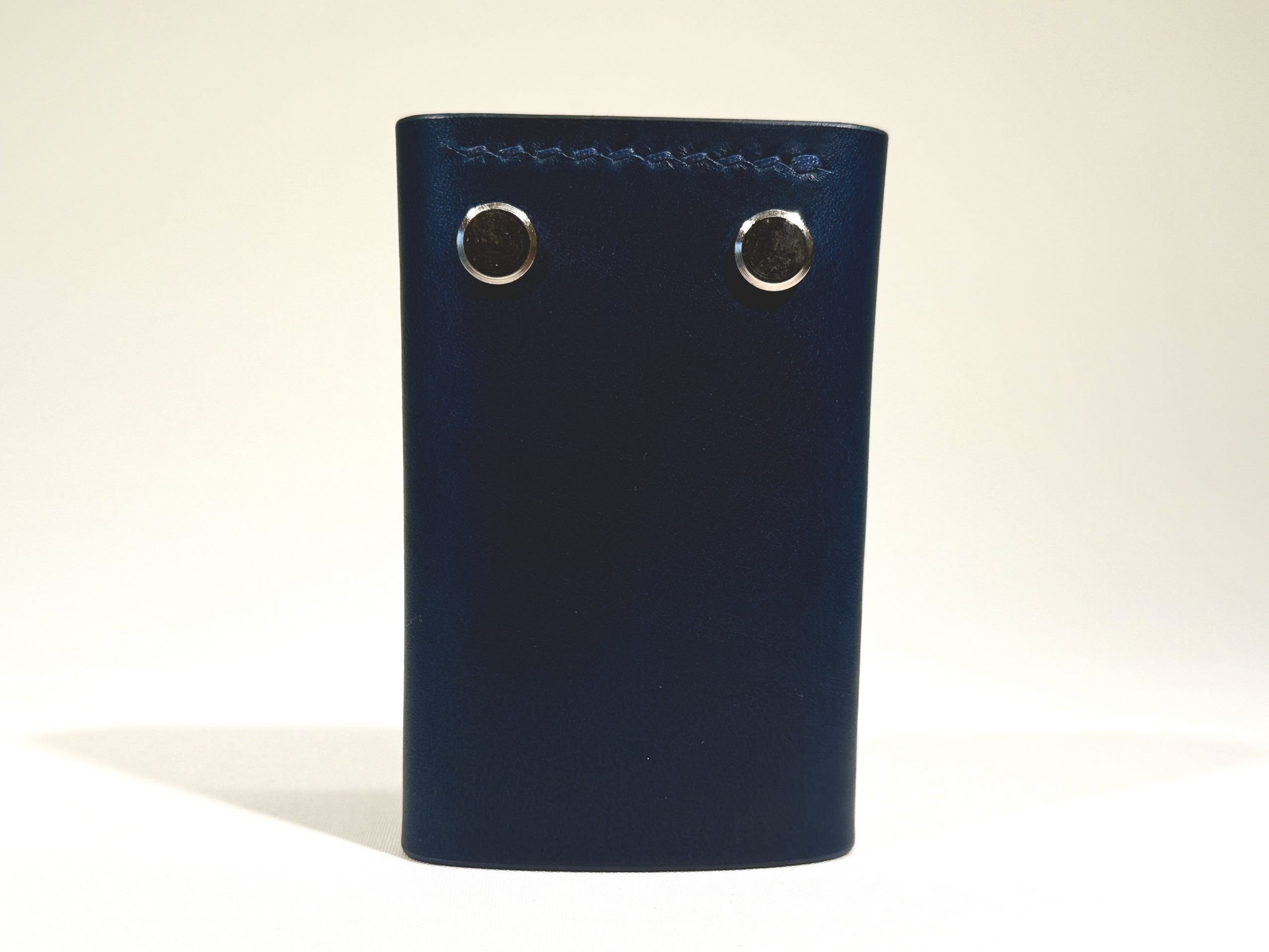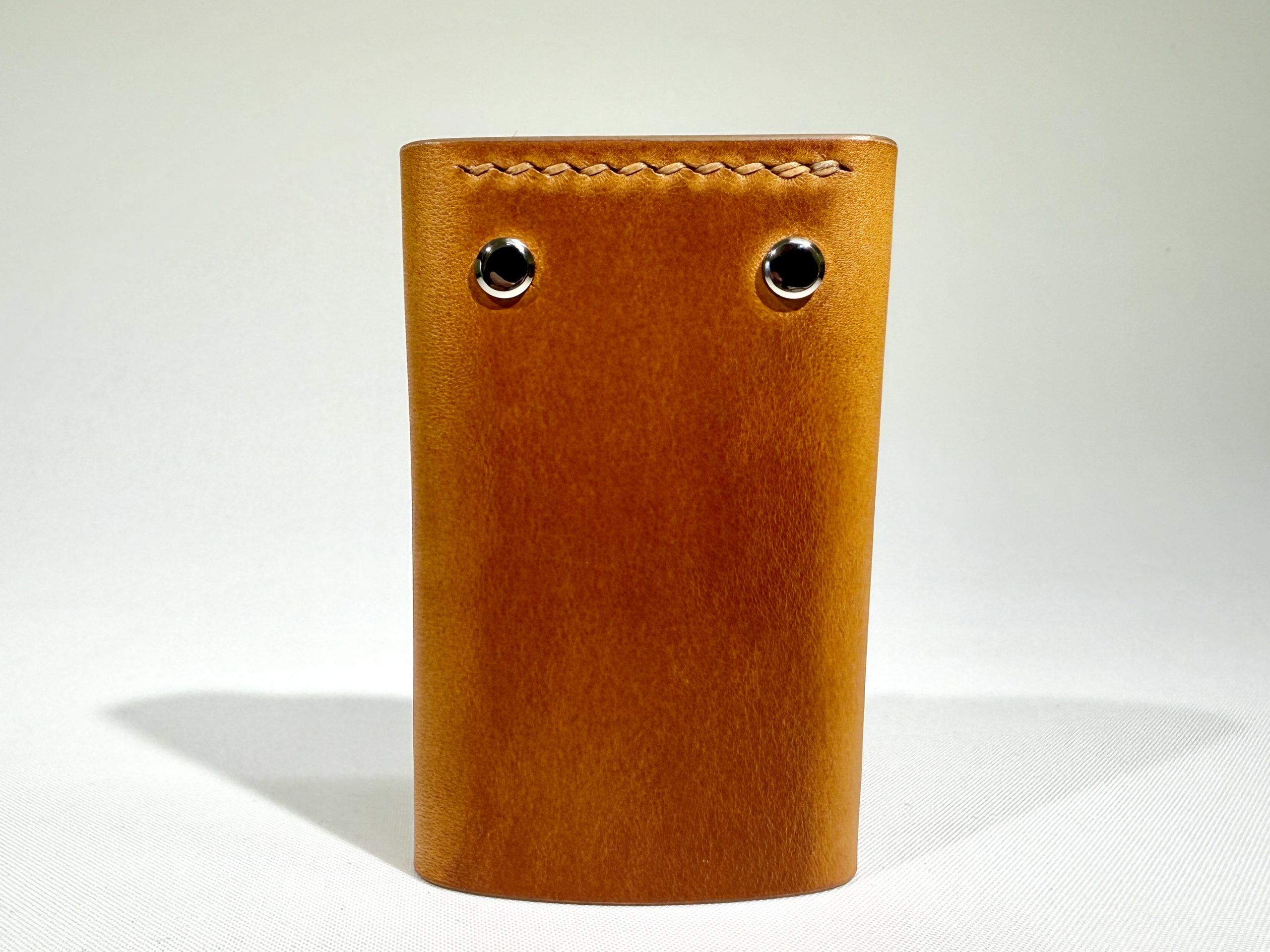 This holder is made from Italian vegetable tanned leather. The leather thickness is around 2.2 mm. This means that it is rigid and will stay in its shape, however, it will get softer over time and create a unique patina according to your daily use.