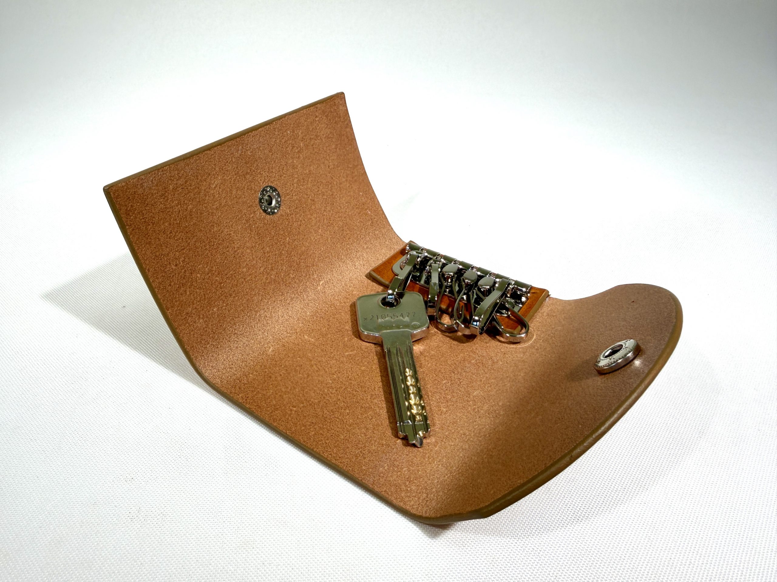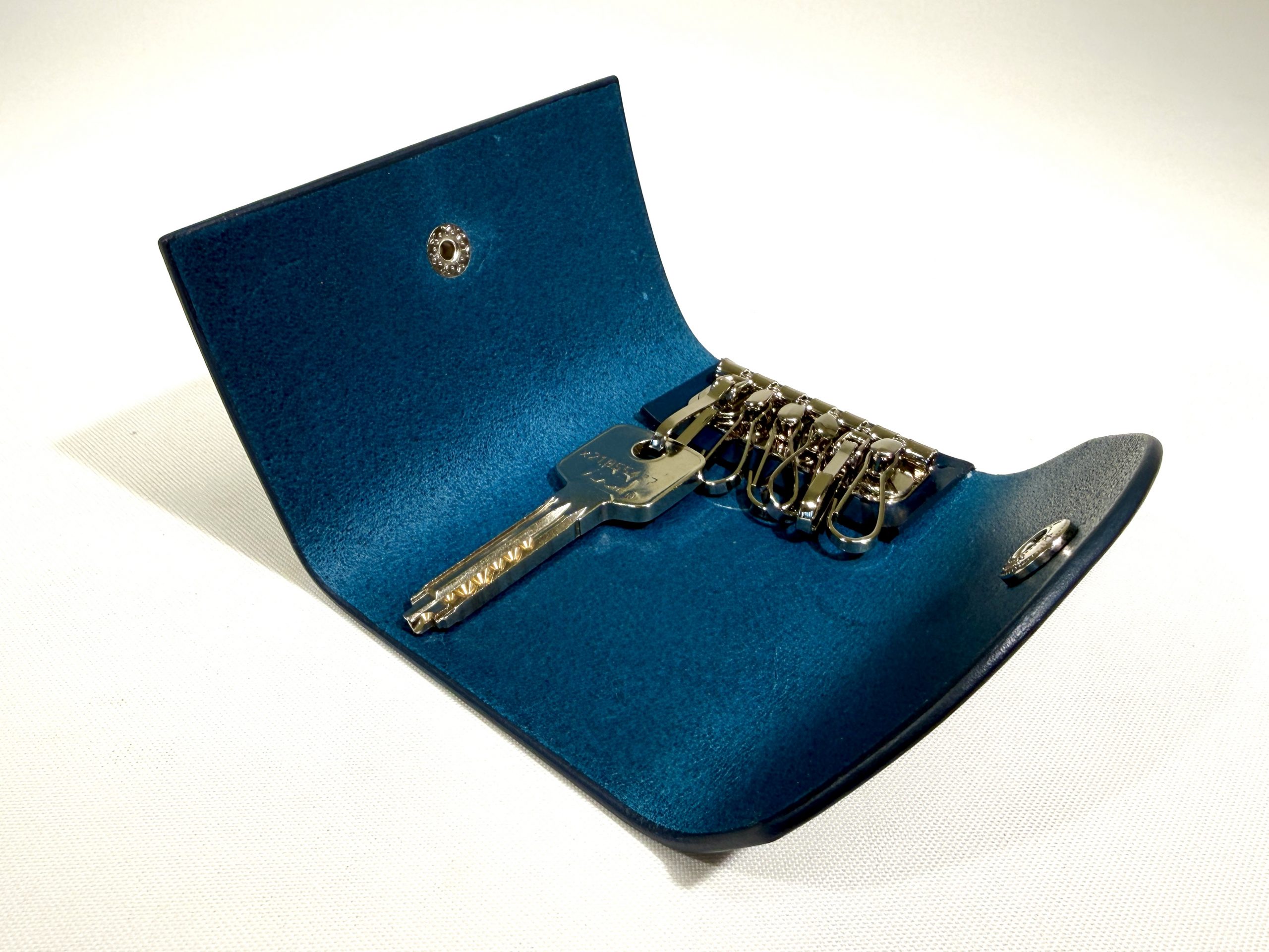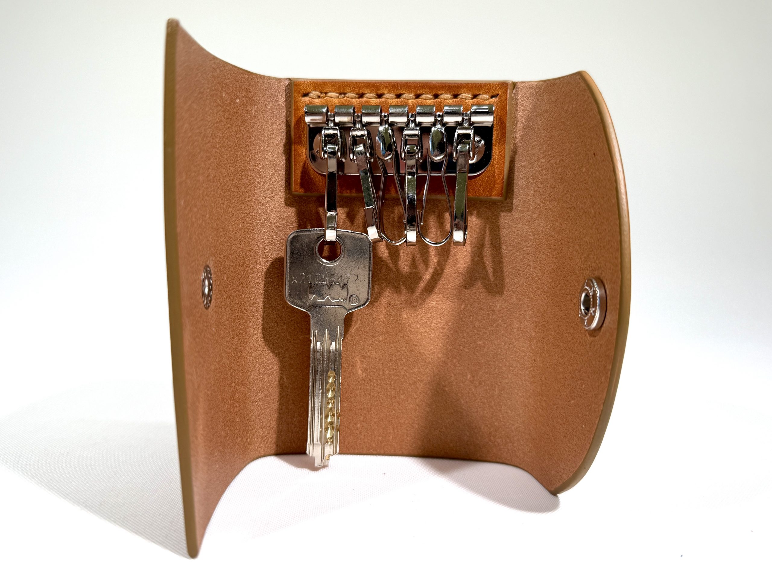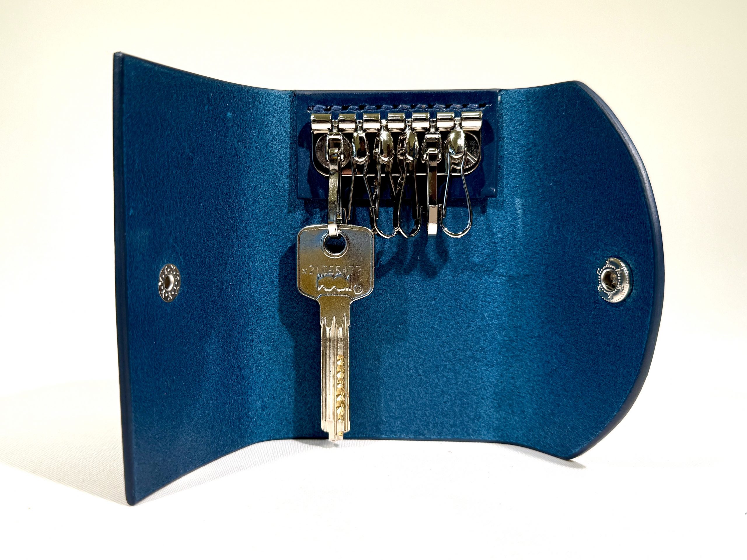 Simple, minimal style key pouch with 6 key holders. This pouch/holder can keep standard size keys, 6.5 cm in length, without sticking out at the bottom.